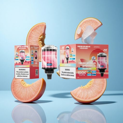 JNR Mega Shisha Hookah 100K Fersken Is Justerbar Luftstrøm Interaktiv Smart Skærm