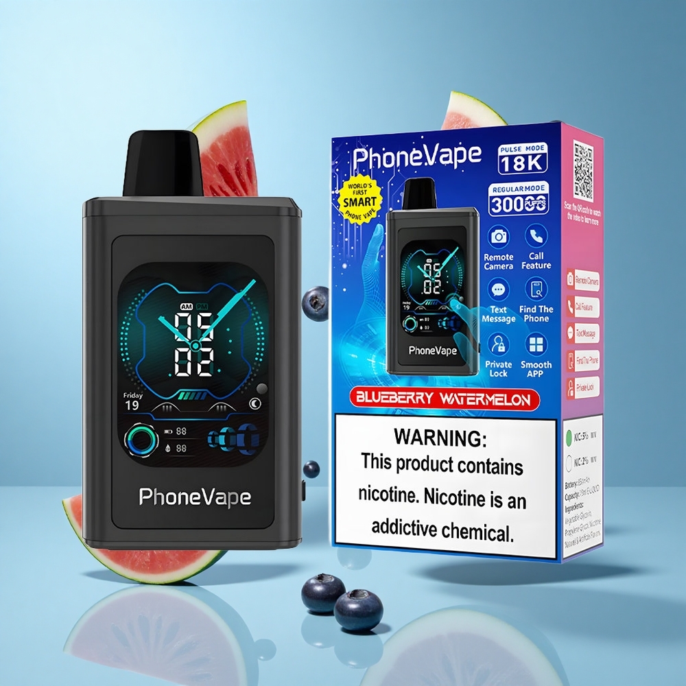 JNR PhoneVape 30000 Puffs Blåbær Vandmelon Opladelig Batteri Justerbar Luftflow