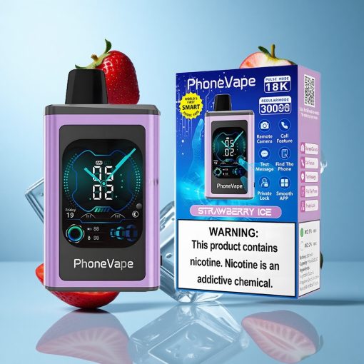 JNR PhoneVape 30000 Puffs Jordbær Is Med Justerbar Luftgennemstrømning Og Type-C Genopladning