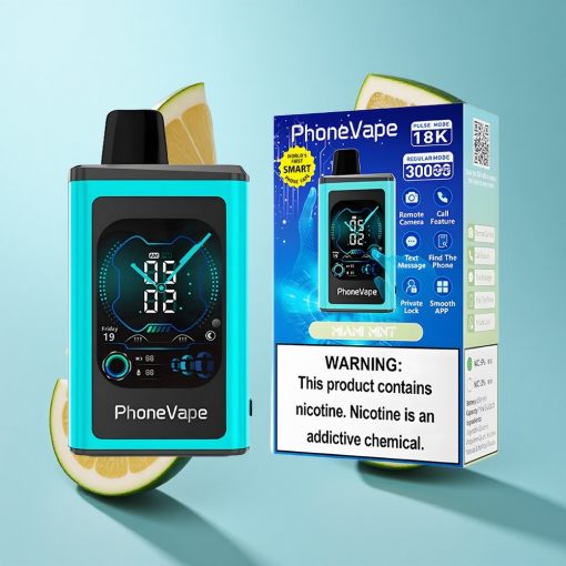 JNR PhoneVape 30000 Puffs Miami Mynte Opladningsbar Batteri Justerbar Luftgennemstrømning